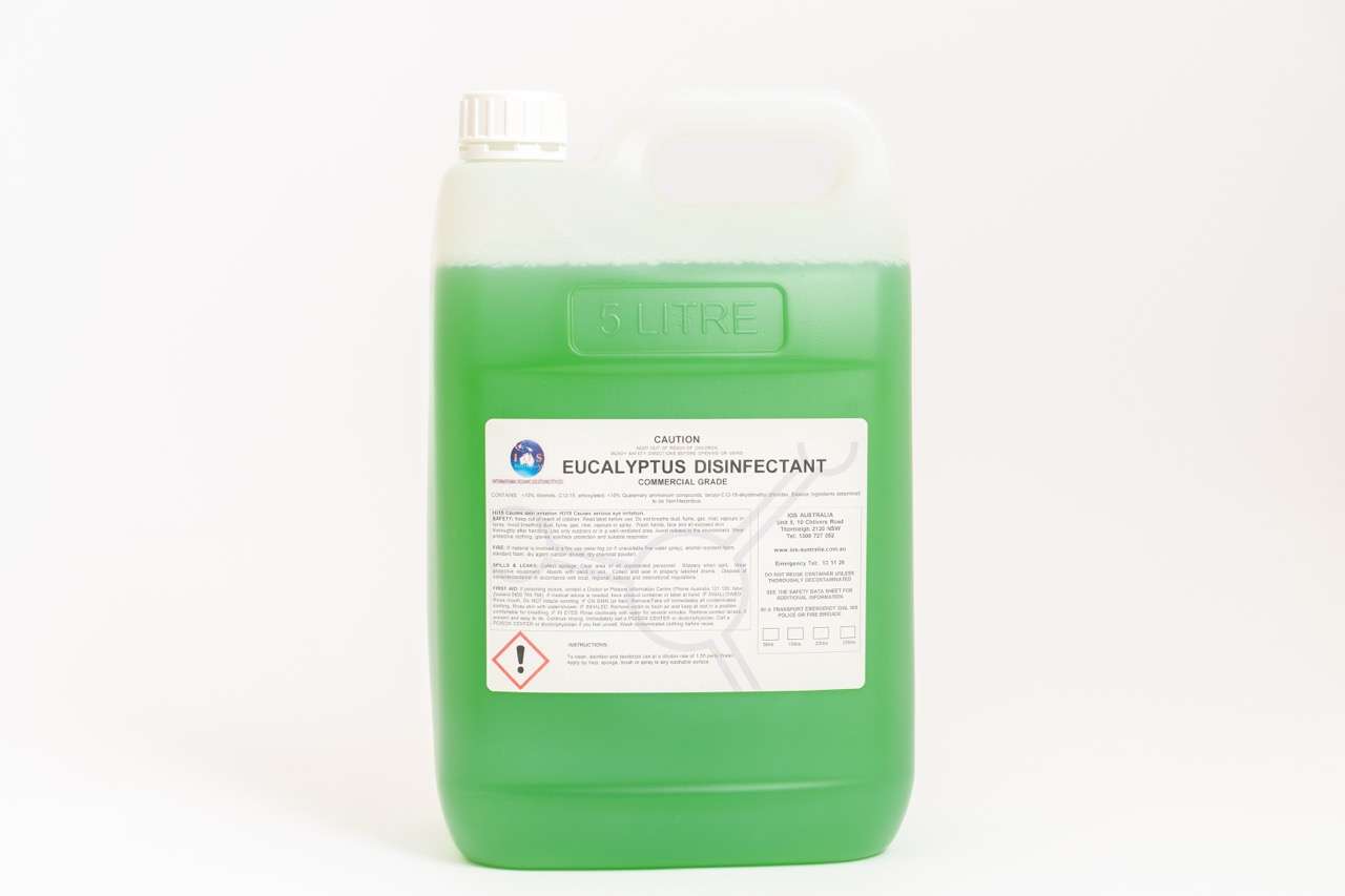 Multipurpose disinfectant with eucalyptus scent, 5 L. Effective on floors and surfaces, great for healthcare or high-touch zones.