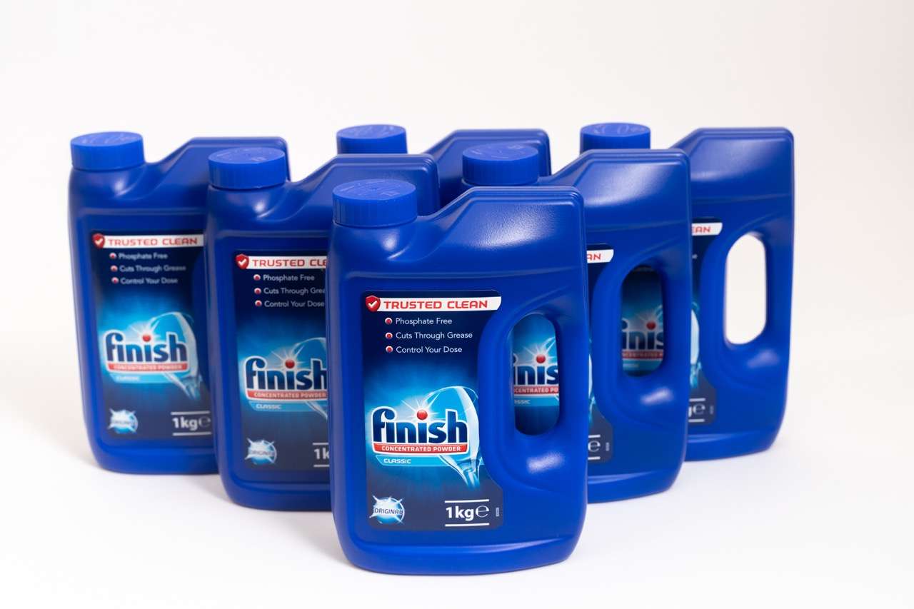 Dishwasher detergent powder, 6-pack, effective against tough grease.