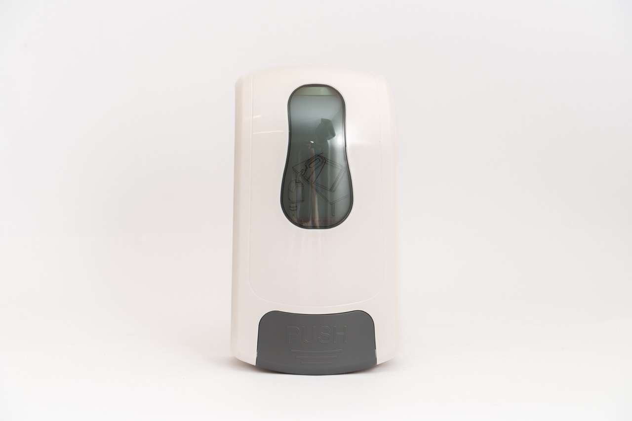 Manual plastic dispenser suitable for liquid or foam soap. Easy mounting and refill capability.
