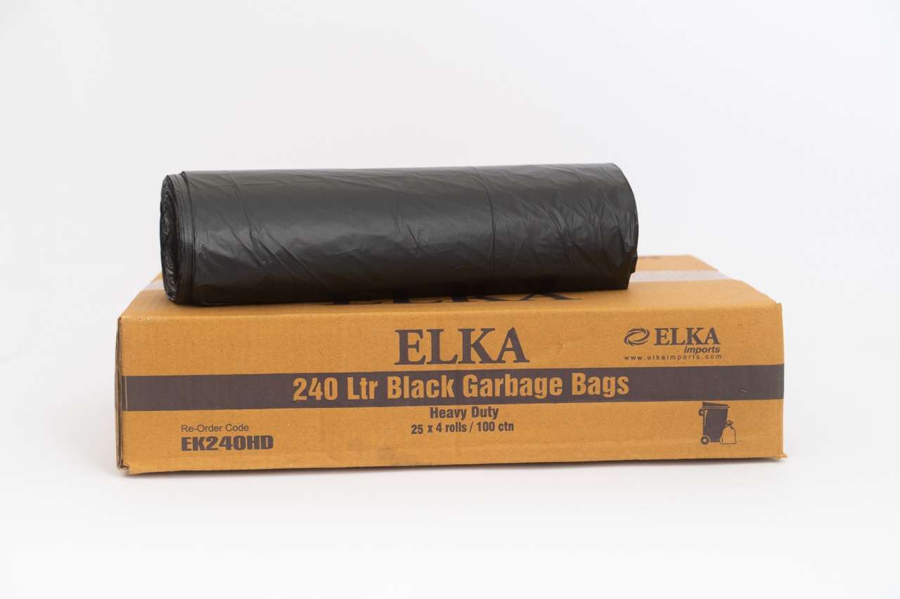 Large 240 L black liners, 100 per carton. Designed for outdoor bins and trolley waste services.