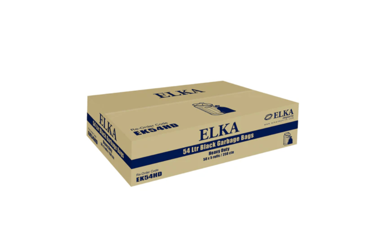 Strong 54 L black garbage bags, carton of 250 on rolls. Built for heavy waste and regular use in busy environments.