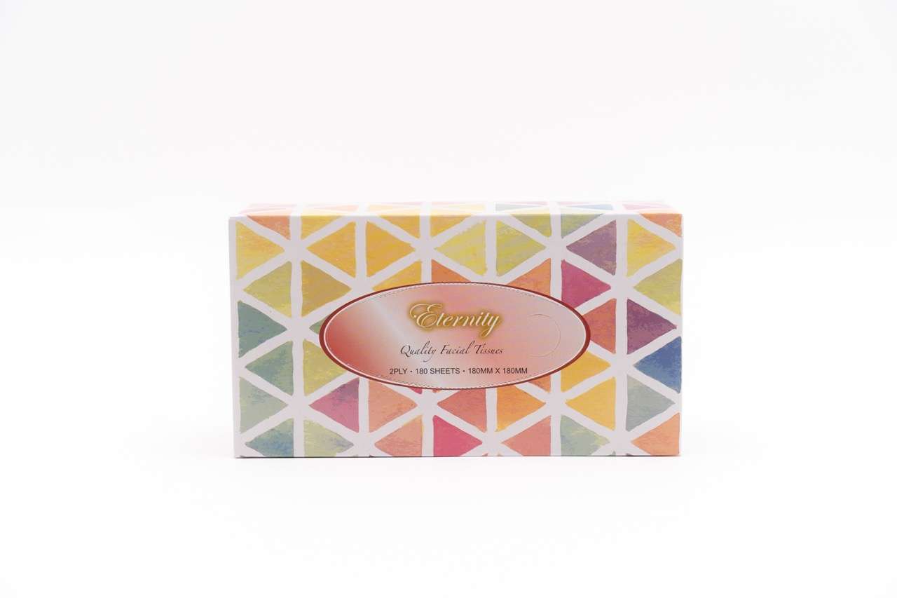 Eternity Premium 2-ply facial tissues, 180 sheets per box. Bulk pack of 36 ideal for offices or commercial use.